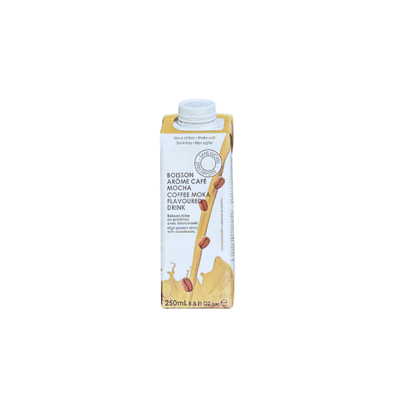 Ingrediënten en allergenen (dikgedrukt): Gefilterd water; melkeiwit; room (melk); oploskoffiepoeder en koffie-extract; aroma’s; vetarme cacaopoeder; inuline; stabilisatoren: natriumfosfaten, polyfosfaten, natriumcitraten; verdikkingsmiddelen: cellulose, carboxymethylcellulose, carrageen; emulgator: mono- en diglyceriden van vetzuren; zout; zoetstoffen: sucralose, acesulfaam-K.